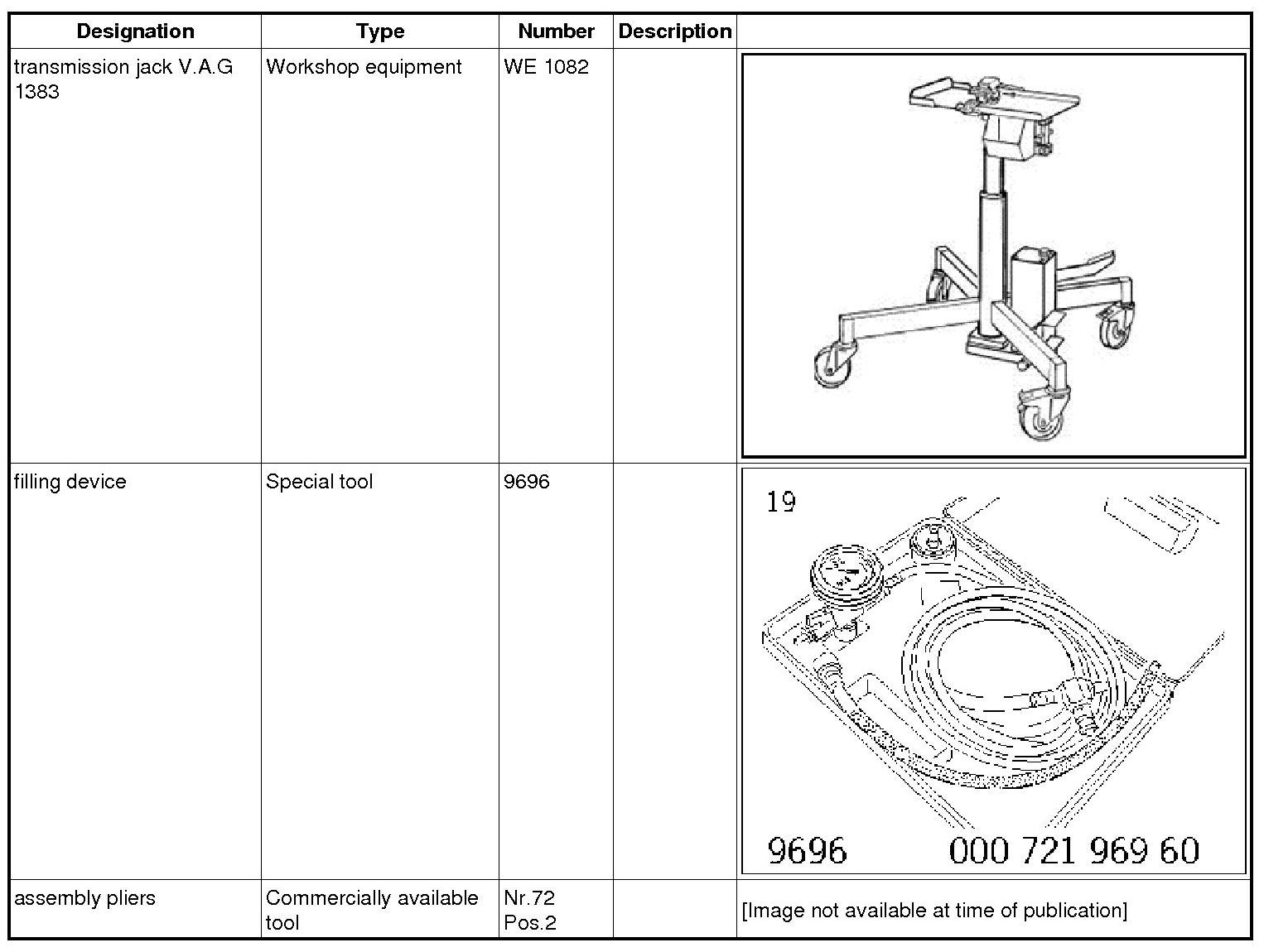 2.1. Secure the pan to the plate on the transmission jack V.A.G 1383 WE 1082 with a tension strap.