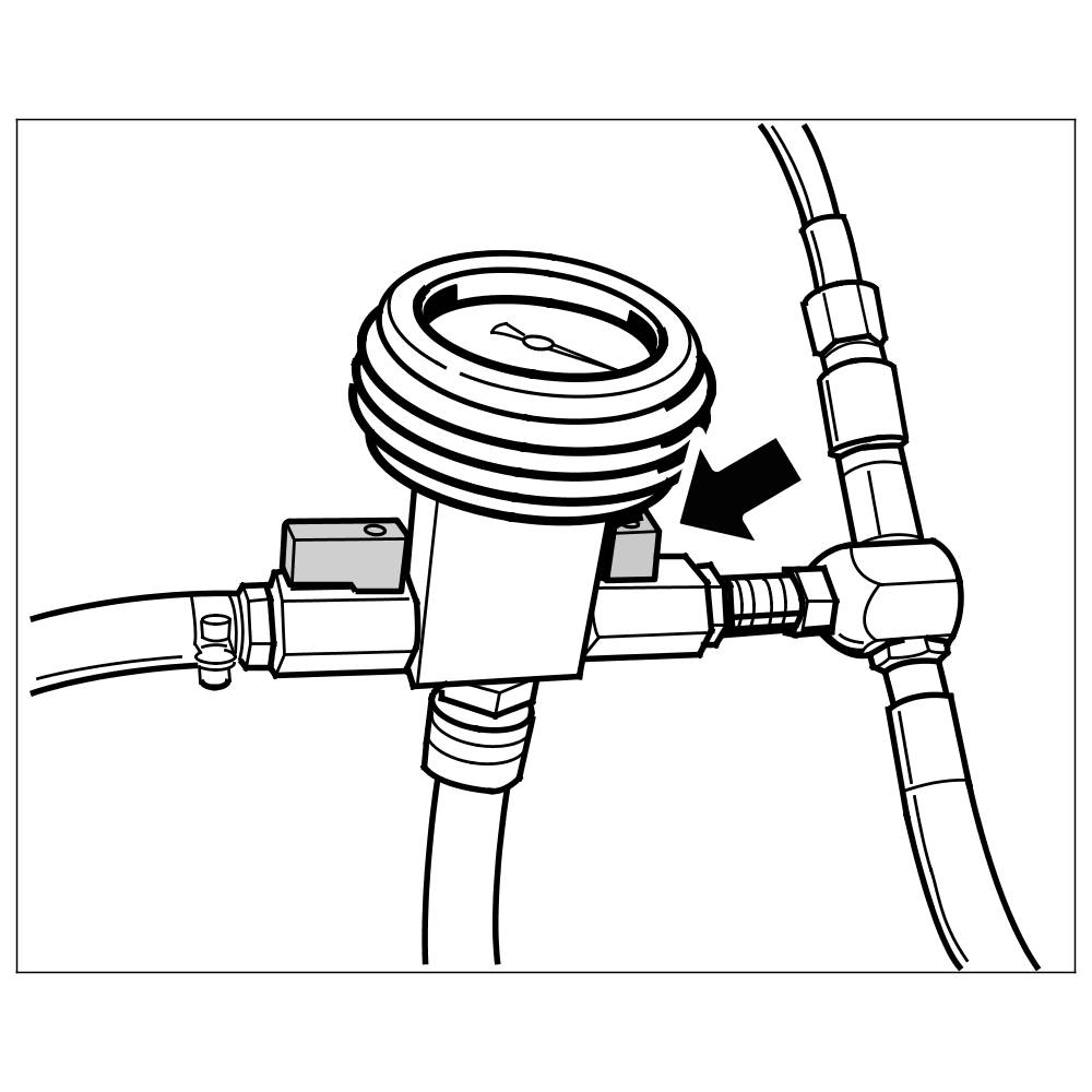 11. Open the left shut-off valve on the vacuum pressure gauge (right valve closed -arrow- ).