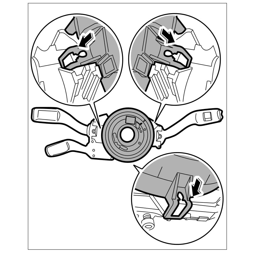 1. Position airbag contact unit and press onto the steering column switch until the three tabs engage.