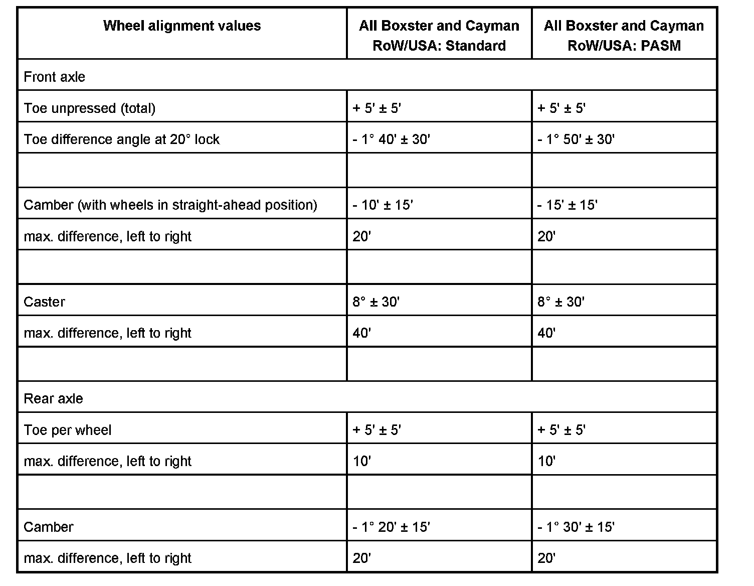Wheel Alignment Values