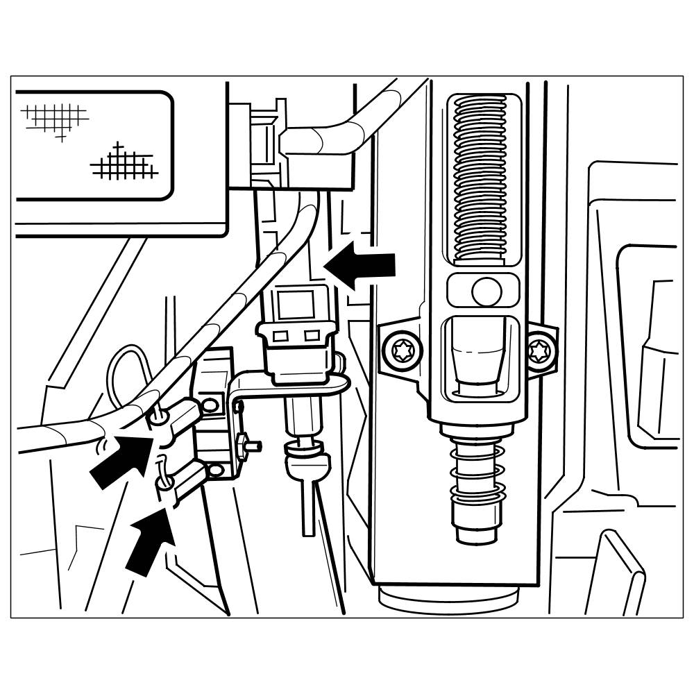 -> The boost spring must be secured with a cotter pin when working near the clutch pedal (except for work on the clutch pedal switch and interlock switch).
