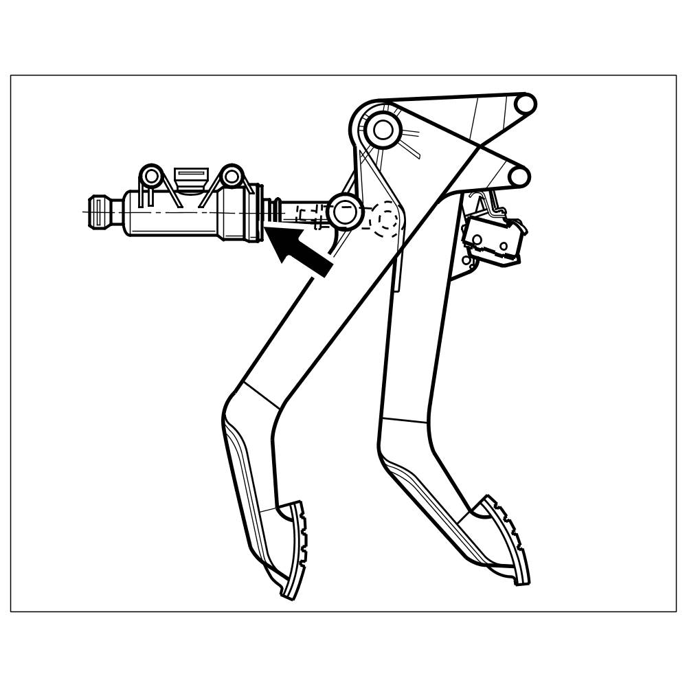 Insert pin. Screw in the fastening screws slightly so that the master cylinder can still be moved. Have the clutch pedal not actuated at the limit stop. Press the clutch master cylinder in the direction of travel and tighten (make sure the return bore in the clutch master cylinder is not blocked!).