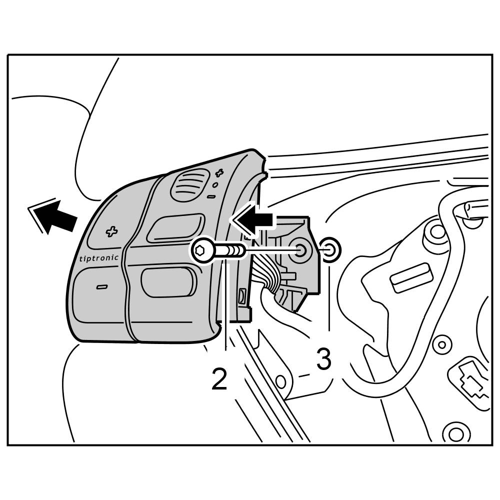 2. Insert remote control into the steering wheel, position washers -3- and screw down with the fastening screw -2-.