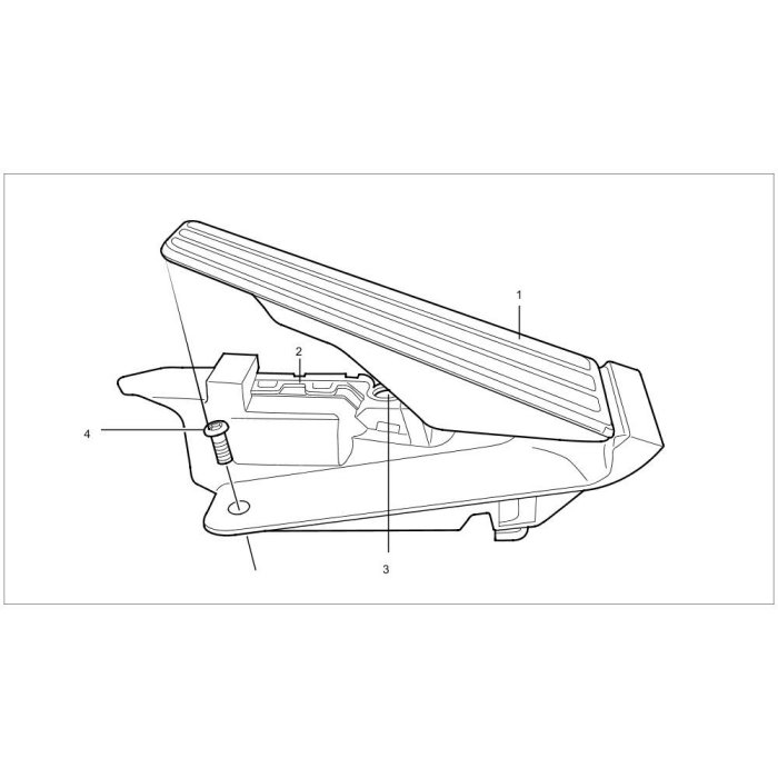The accelerator pedal is an electronic accelerator pedal unit without a mechanical accelerator cable. The electric printed circuit board, among other things, is integrated in the accelerator pedal unit. On vehicles with Tiptronic transmission, the accelerator pedal unit also features a spring-loaded aneroid diaphragm -3- for kickdown simulation. The integrated pedal stop obviates the need for a basic kickdown setting.