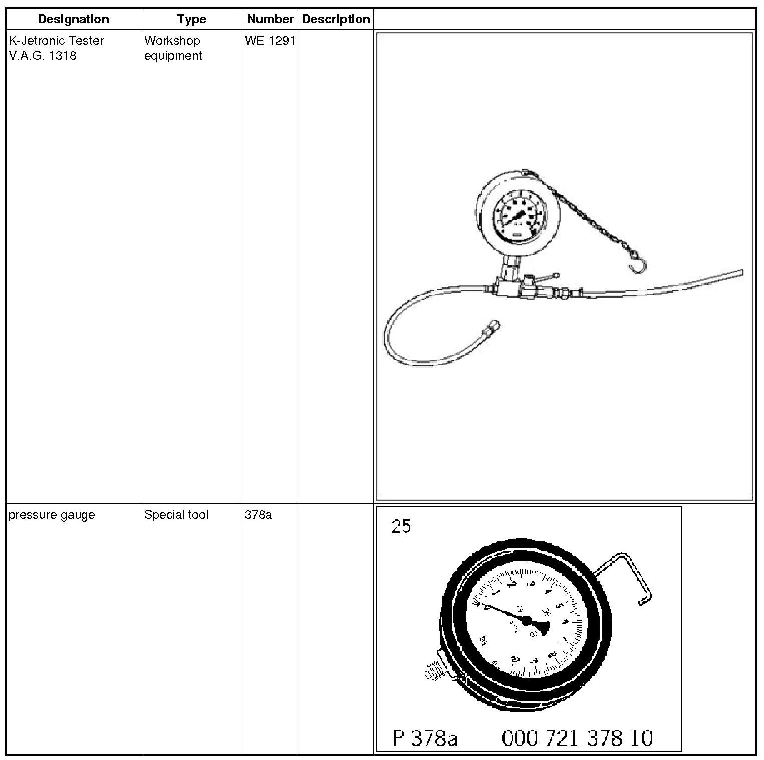 Pressure gauge 378a with connection line no. 17 from V.A.G. 1318