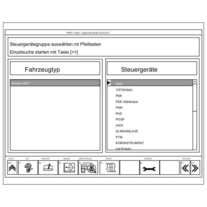 1. PIWIS Tester 9718 must be connected to the adapter line at the input socket in the passenger compartment and ignition must be switched on.