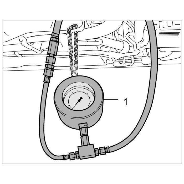 4. Start the engine and read off the fuel pressure on the pressure gauge.