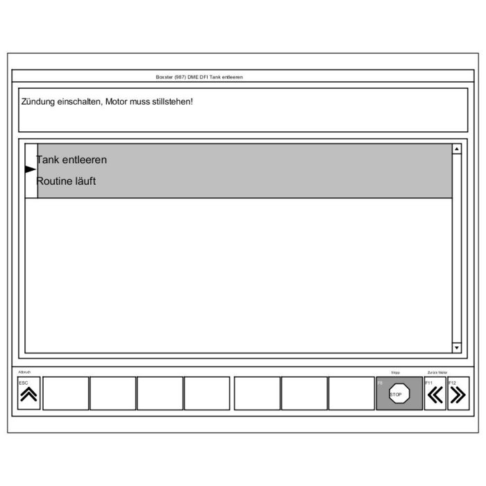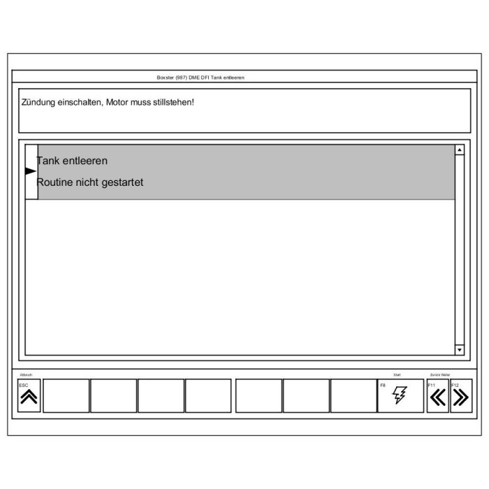 8. Activate the Drain tank (= activate fuel pump) function on the PIWIS Tester 9718 by pressing F8 Start.