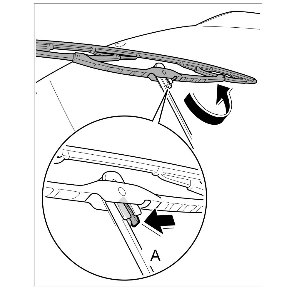 1. Slide wiper blade in from the side and engage in the wiper arm.