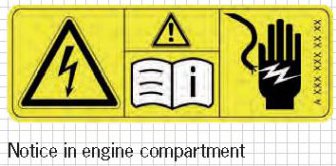 Saftey warning labels that draw attention to potential dangers are applied to all high-voltage components.