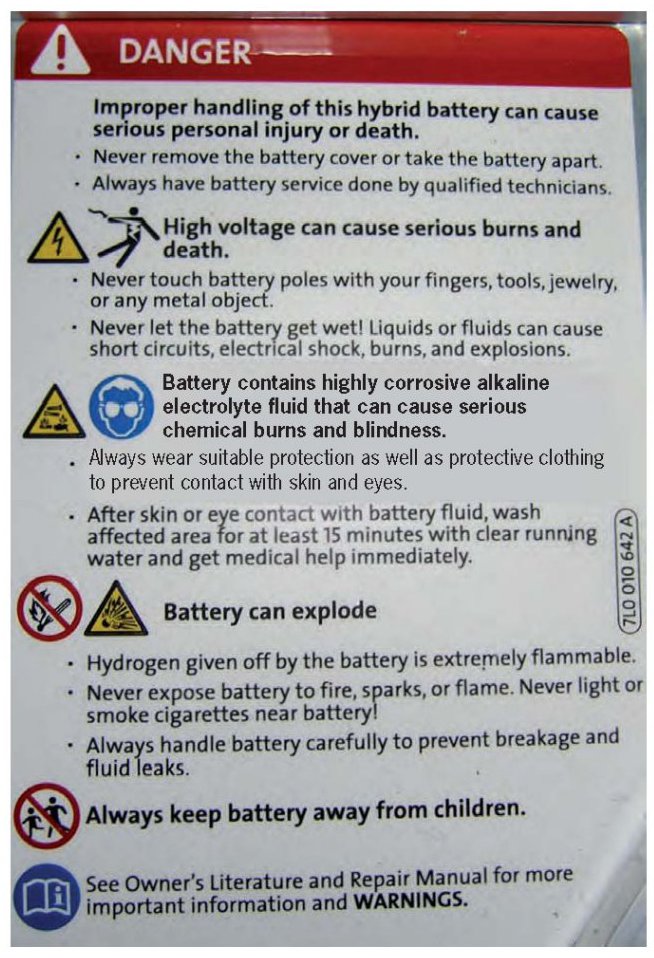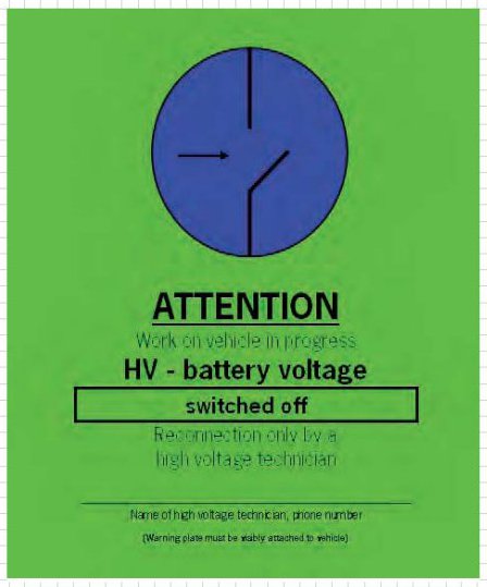 Warning signs must always be attached to hybrid vehicles residing in the workshop to draw the attention of third parties to potential dangers.