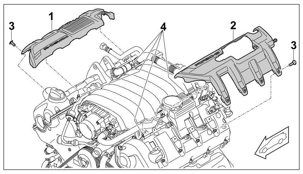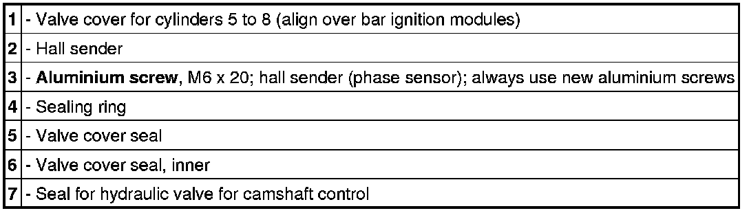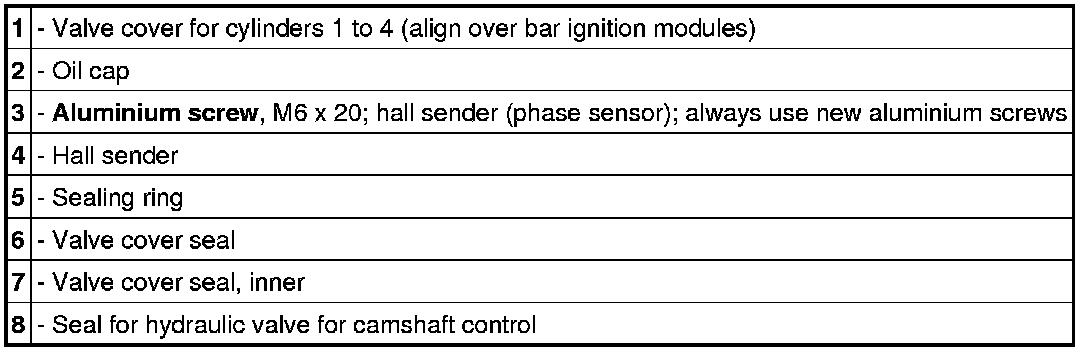 1. Remove design cover on cylinder head cover for the affected cylinder bank. -> 108319 Removing and installing engine cover (design cover) 108319 Removing and installing engine cover (design cover).