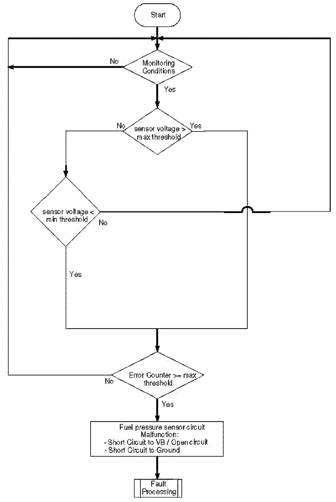 Flow Chart fuel pressure sensor stuck diagnosis