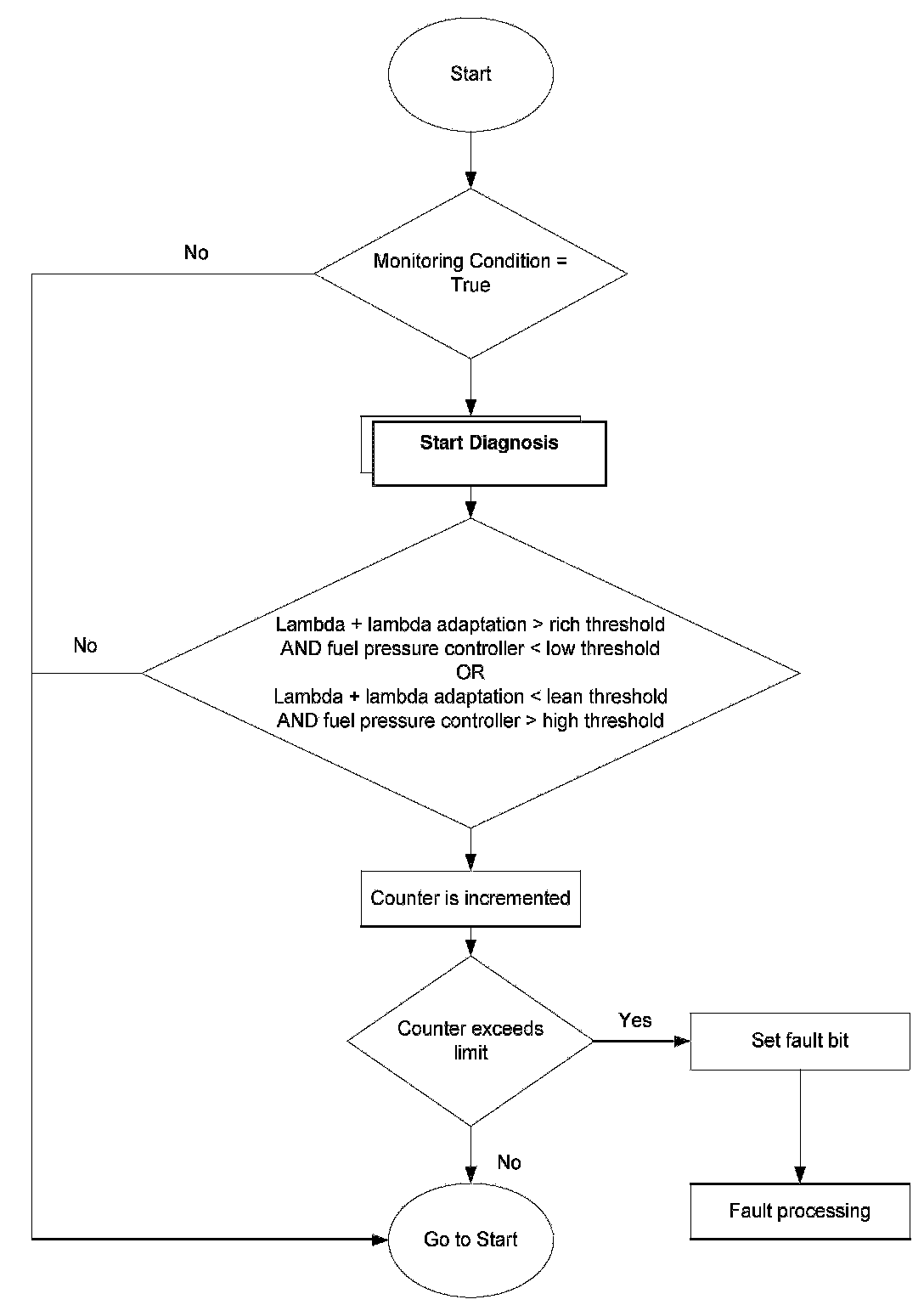 The diagnosis compares the output of the lambda-controller and lambda-adaptation with the output of the closed-loop controller.
