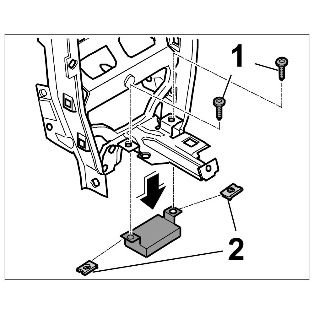 2. Check sheetmetal nuts for deformation, replacing if necessary. Push the two sheetmetal nuts -2- onto the tilt sensor control unit.