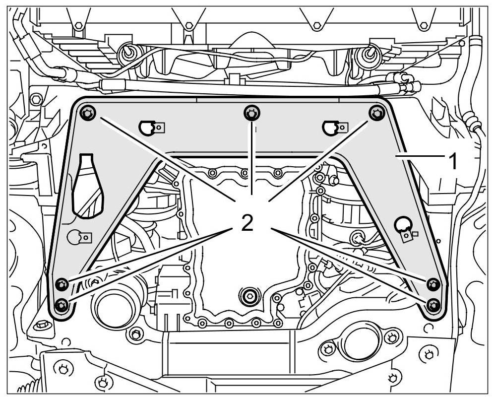 16. Remove fastening screws on the sheetmetal cross member (support, cross strut) -position arrows-.
