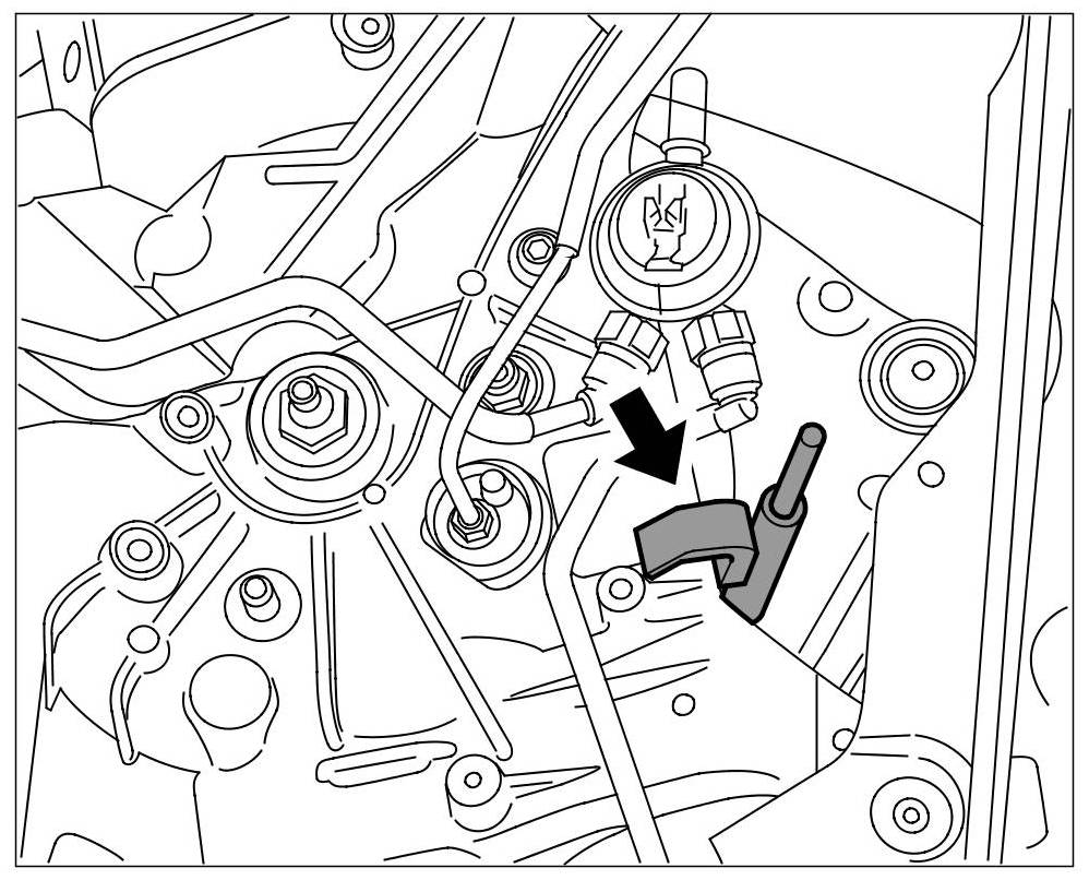 Spring tensioner VW 552 -arrow- must be secured at the top.