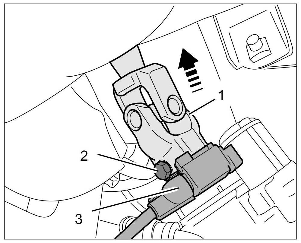 10.4. Slide universal joint -1- and lower part of steering column upwards.