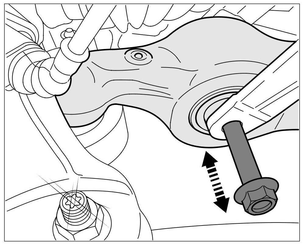 14.1. Raise the elevating platform slightly in order to relieve the pressure on the bolts on the lower control arms.