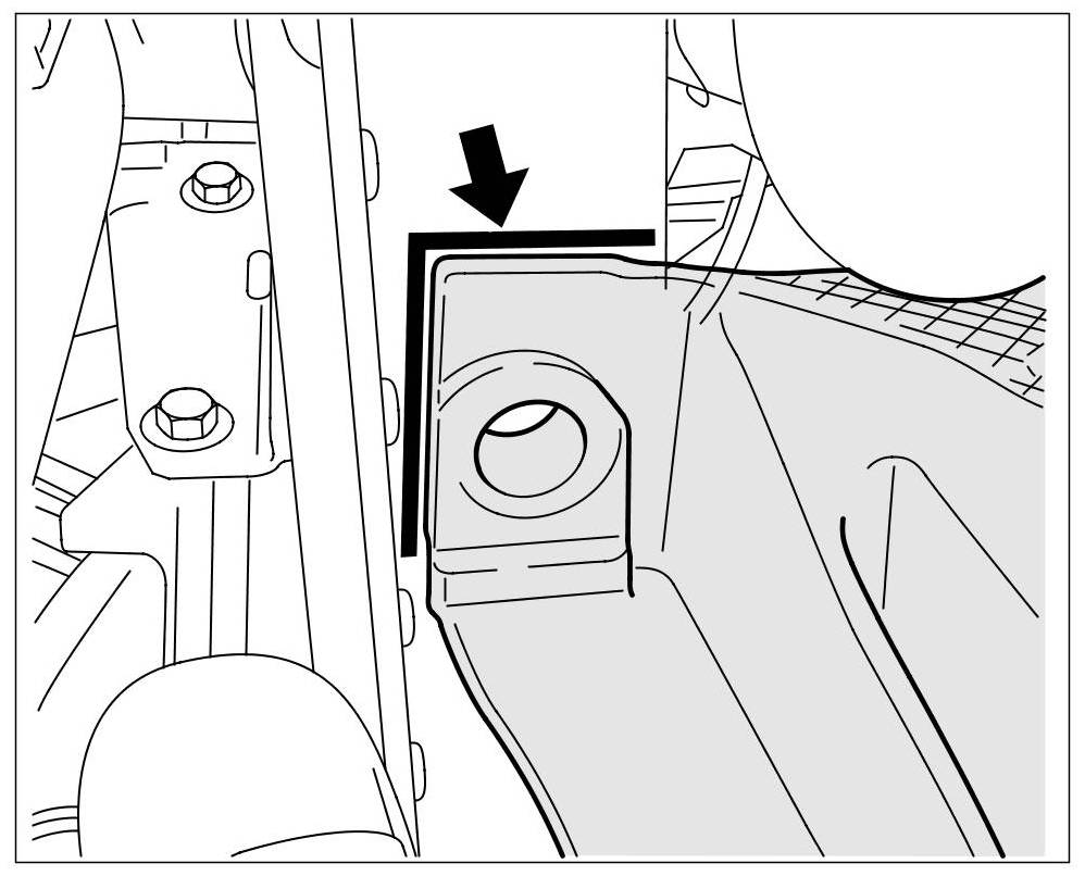 6. Mark the position of the supporting frame on the longitudinal member -arrows- (using a felt-tip pen, for example; to facilitate assembly).