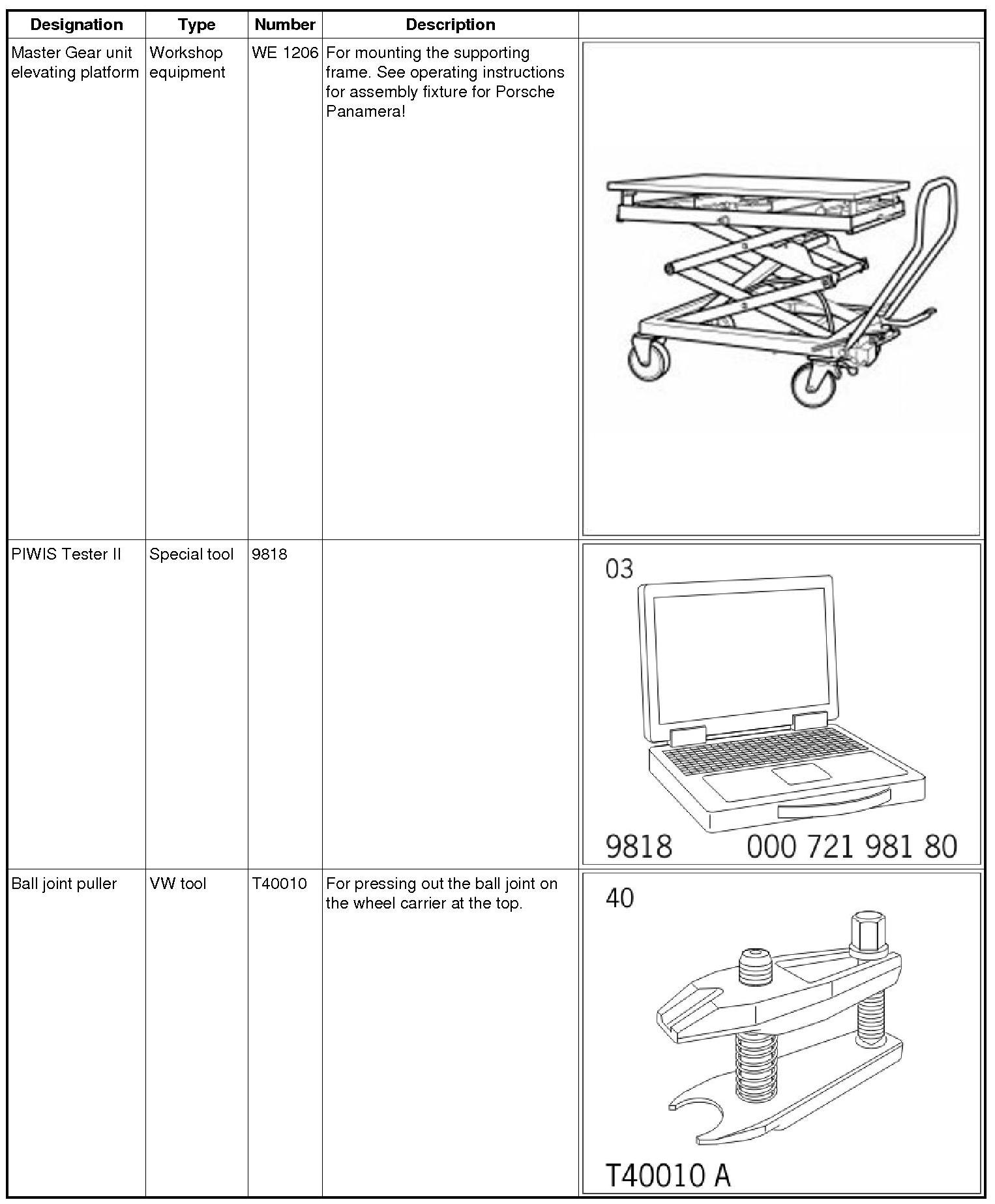 10.2. Press off the ball joint using the ball joint puller T40010. When doing this, leave the fastening nut flush on the ball pin so as not to damage the thread.