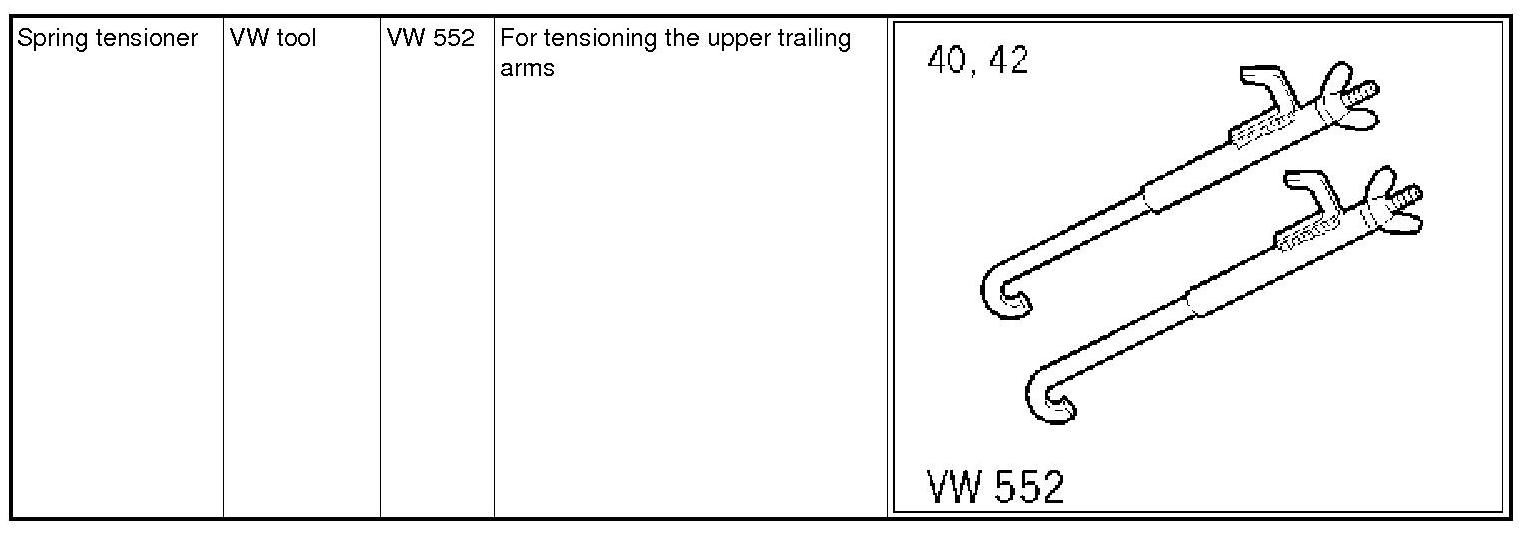 Secure the upper trailing arms using the spring tensioner VW 552 before removing the elevating platform.