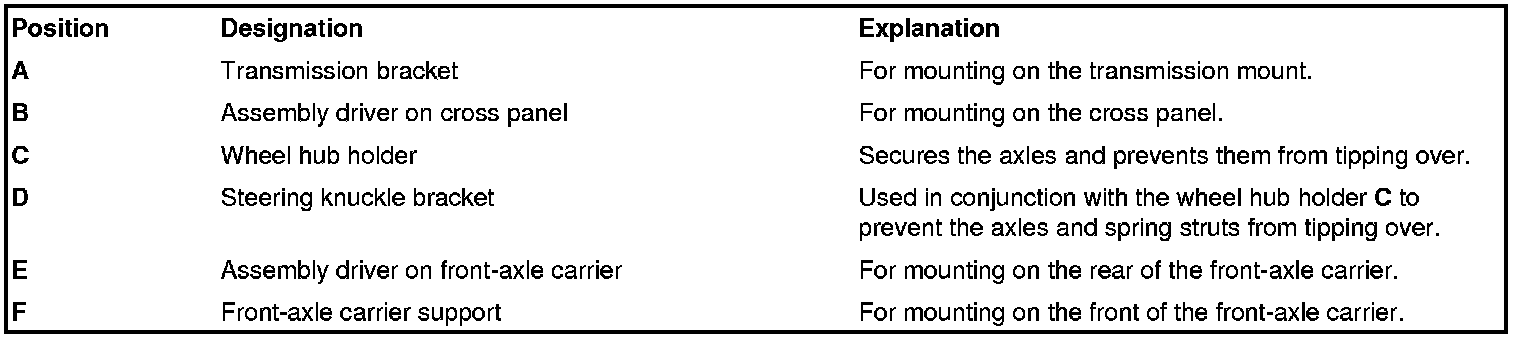 Only the supports marked with single digits (e.g. P1, P2, P3) are used for mounting the front axle!