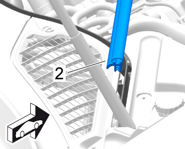 2.1. Pull the ends of the front profile seal -1- over the retaining lugs -2-.