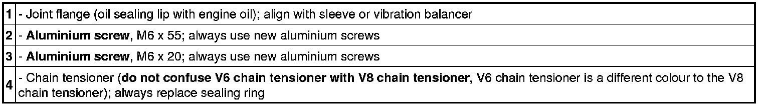 - If the chain tensioner is removed, the aluminium sealing ring must be replaced.