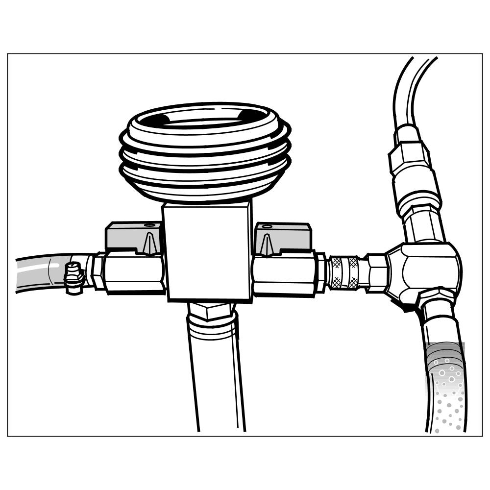 8. Open both shut-off valves on the vacuum pressure gauge => Shutoff valves on vacuum pressure gauge until the transparent filler hose has completely filled with coolant.