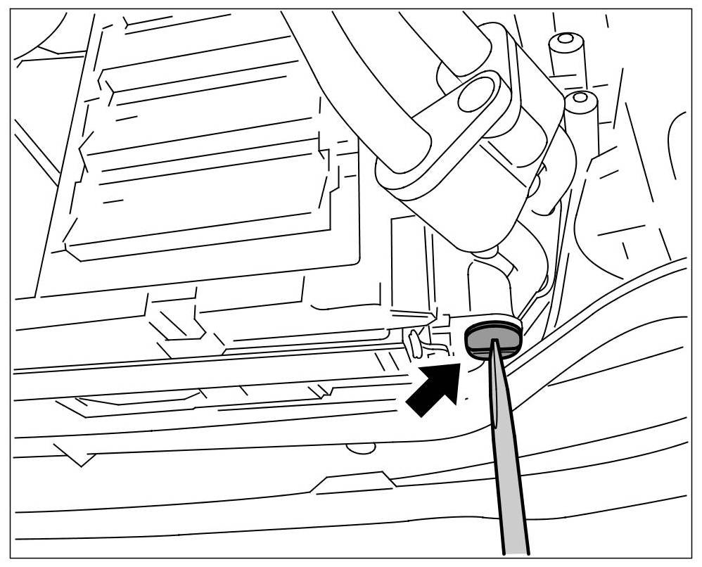 1. If you have not already done so, carefully open the cap on the coolant reservoir using gloves or a cloth. => Cap on coolant reservoir