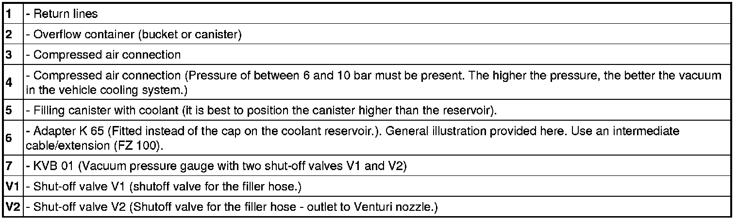 - Clamps on cooling system components must also be vacuum-filled if significant amounts of coolant are drained. Drain at least two litres of coolant for vacuum-filling because otherwise the correct vacuum cannot be built up.