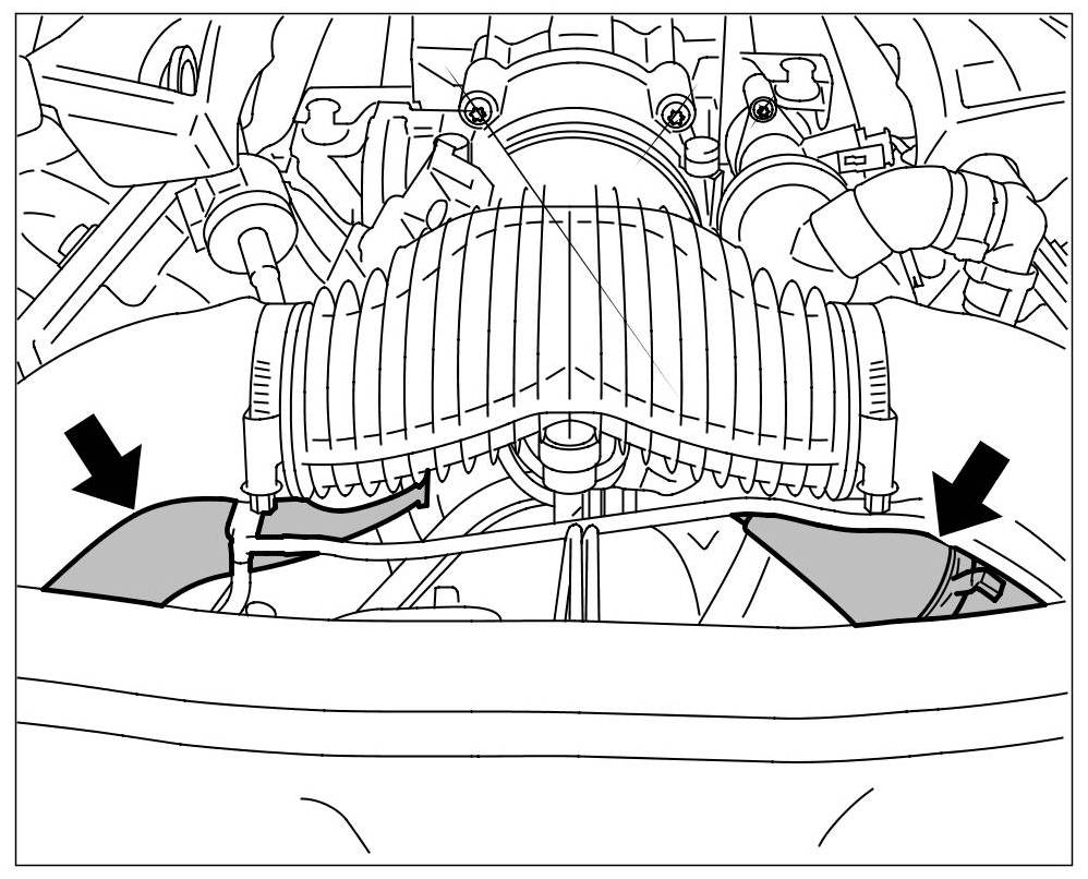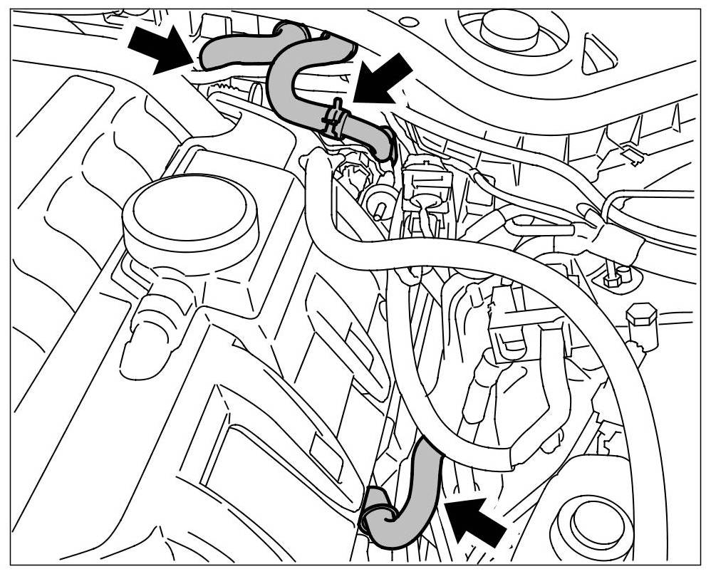 18.2. Feel the following coolant hoses to check that they are heating up uniformly. => Supply and return hose for radiator => Peripheral engine cooling hoses