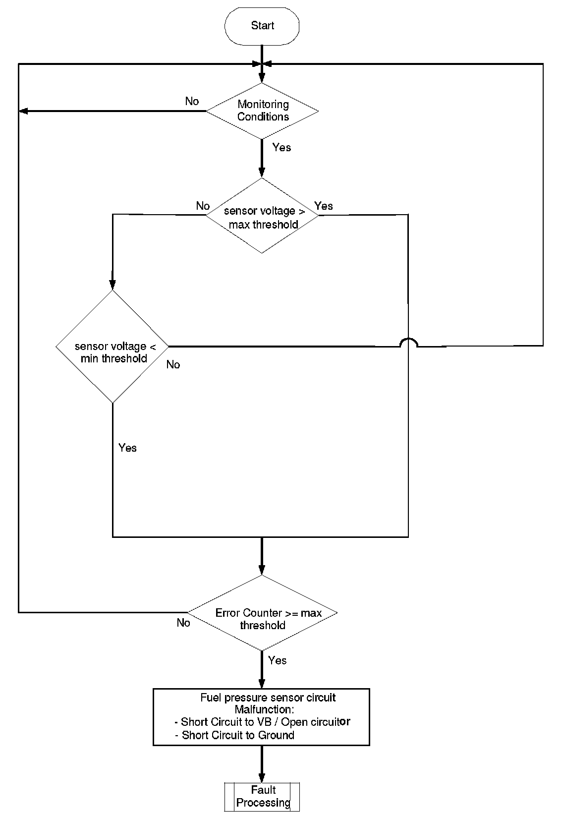 Flow Chart fuel pressure sensor stuck diagnosis