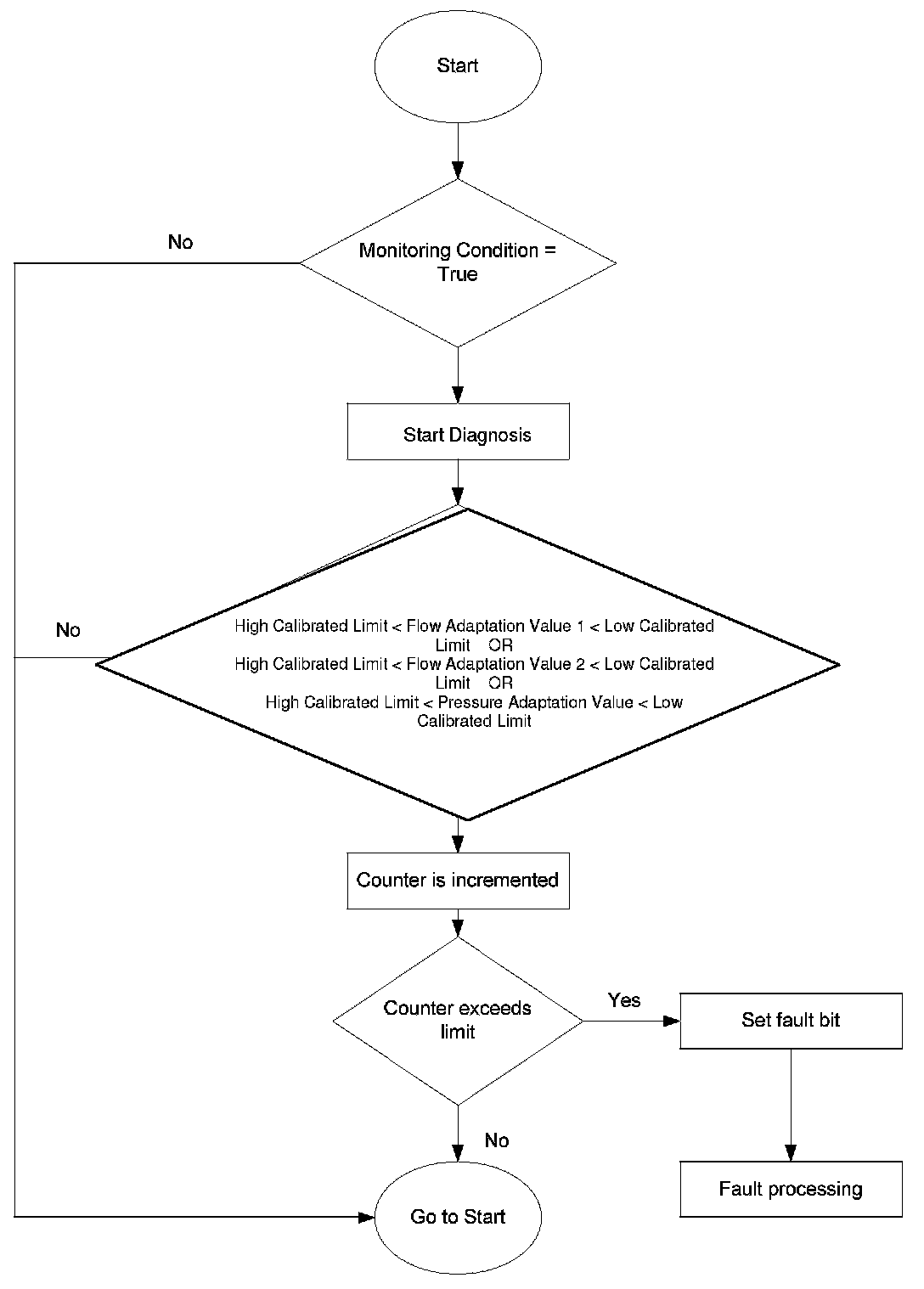 Flow Chart high pressure pump adaptation diagnosis