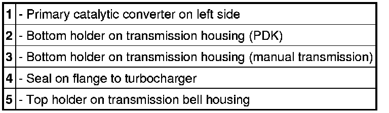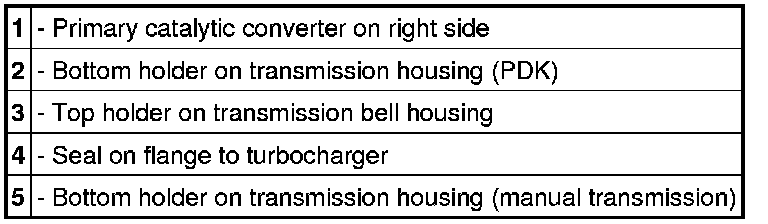 8. The procedure for removing the left primary catalytic converter from the holders is the same as for the right side.