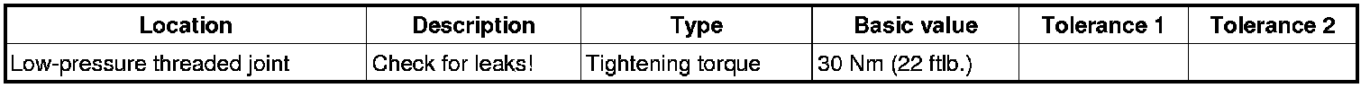 1. Remove tool and reconnect vehicle connections => Tightening torque: 30 Nm (22 ftlb.). Absorb and wipe off residual fuel with a cloth.