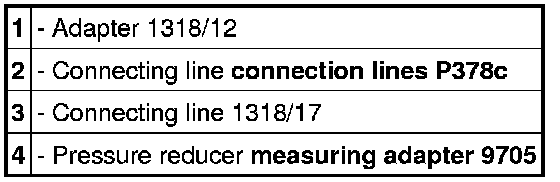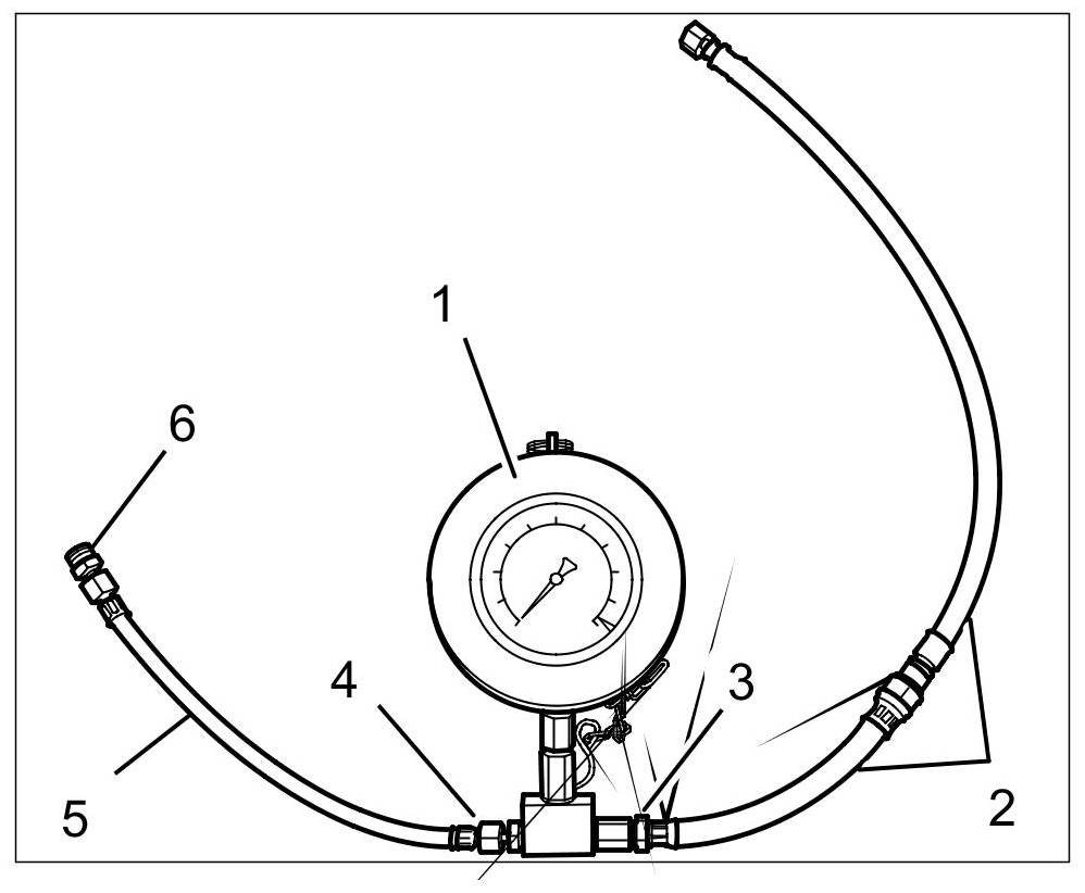 2.1. Connect the test equipment. The tool setup must be fitted with sealing rings (copper, aluminium, plastic, etc.) between the individual components. The setup must be fully sealed. => Pressure measurement connection in the vehicle