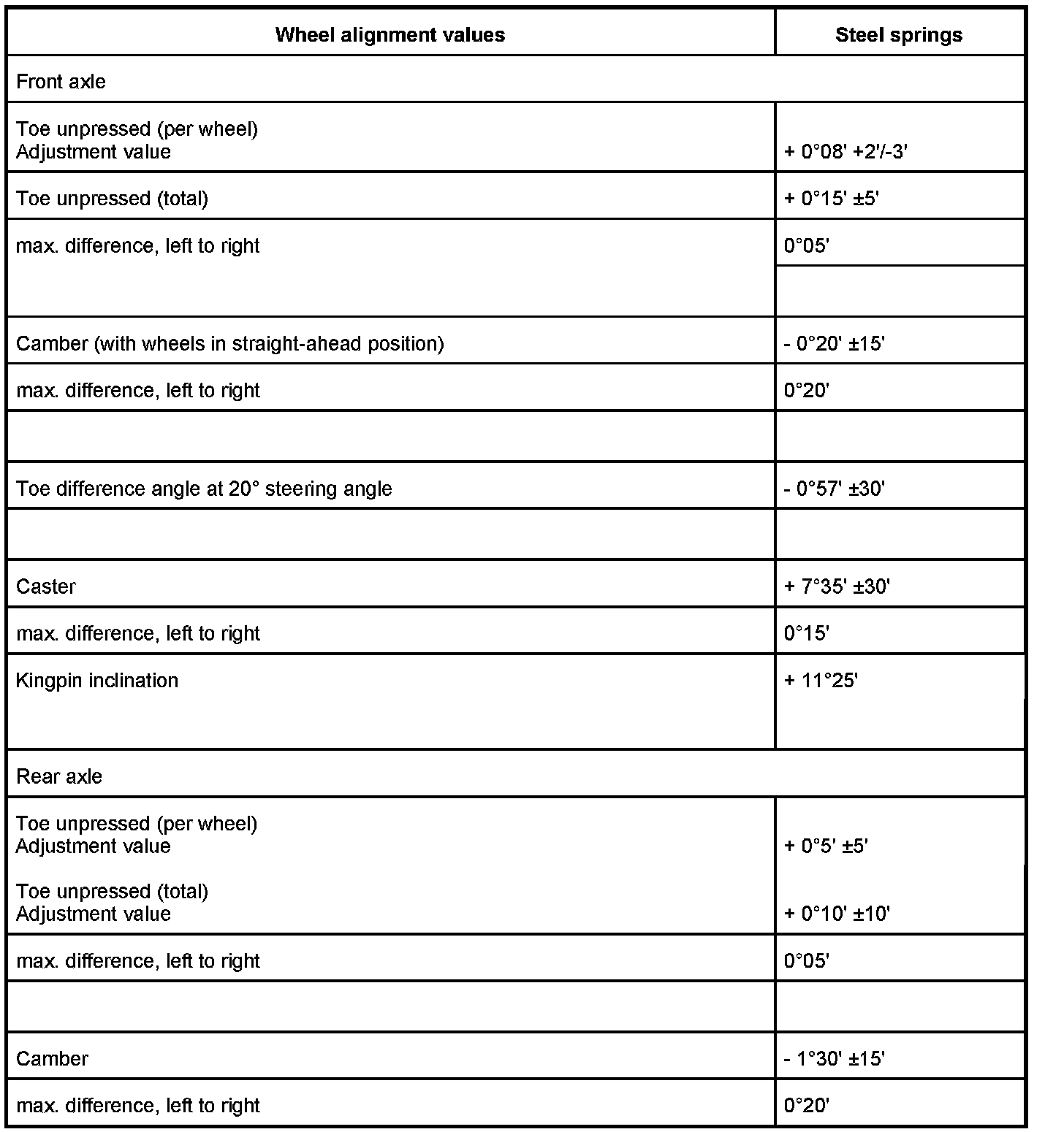 Wheel alignment values, steel springs