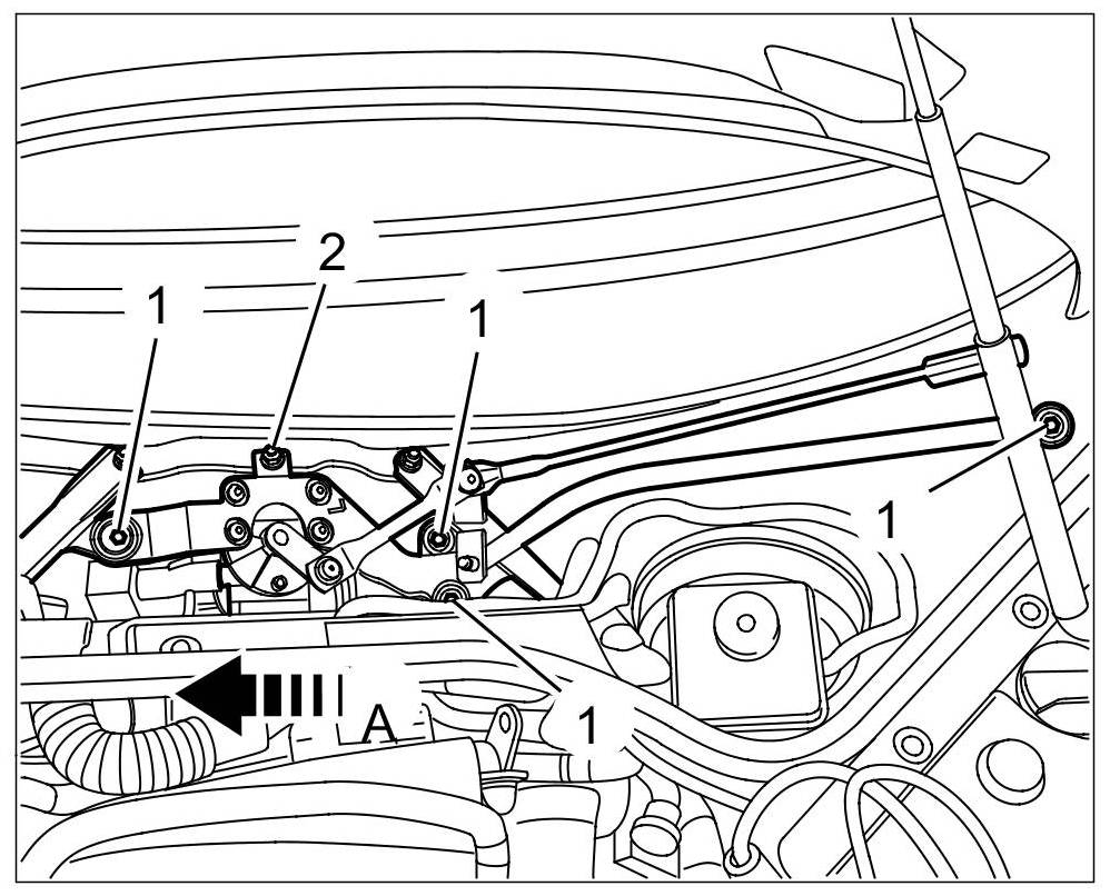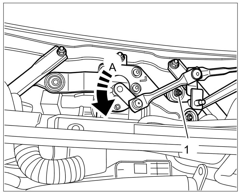 1. Turn the wiper linkage and move it into position -A- so that the fastening screw -1- can be reached.