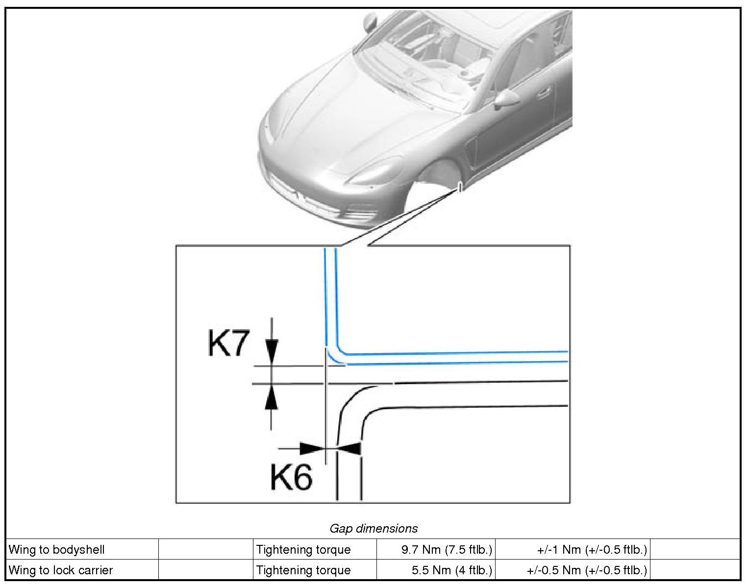 2. Tighten fastening screws for wing to the specified tightening torque -> Tightening torque: 9.7 Nm (7.5 ftlb.)+/-1 Nm (+/-0.5 ftlb.) and -> Tightening torque: 5.5 Nm (4 ftlb.)+/-0.5 Nm (+/-0.5 ftlb.).