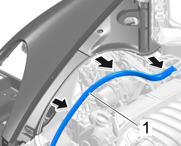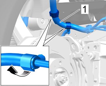 6.1. Unclip hose -1- for headlight ventilation at the retaining bracket.