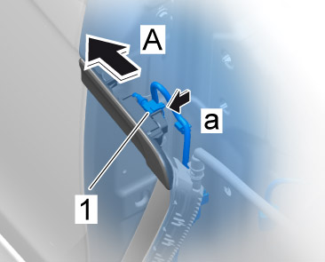 6.2. Release locking mechanism on grommet at the air grille -a- and remove grommet. -B-