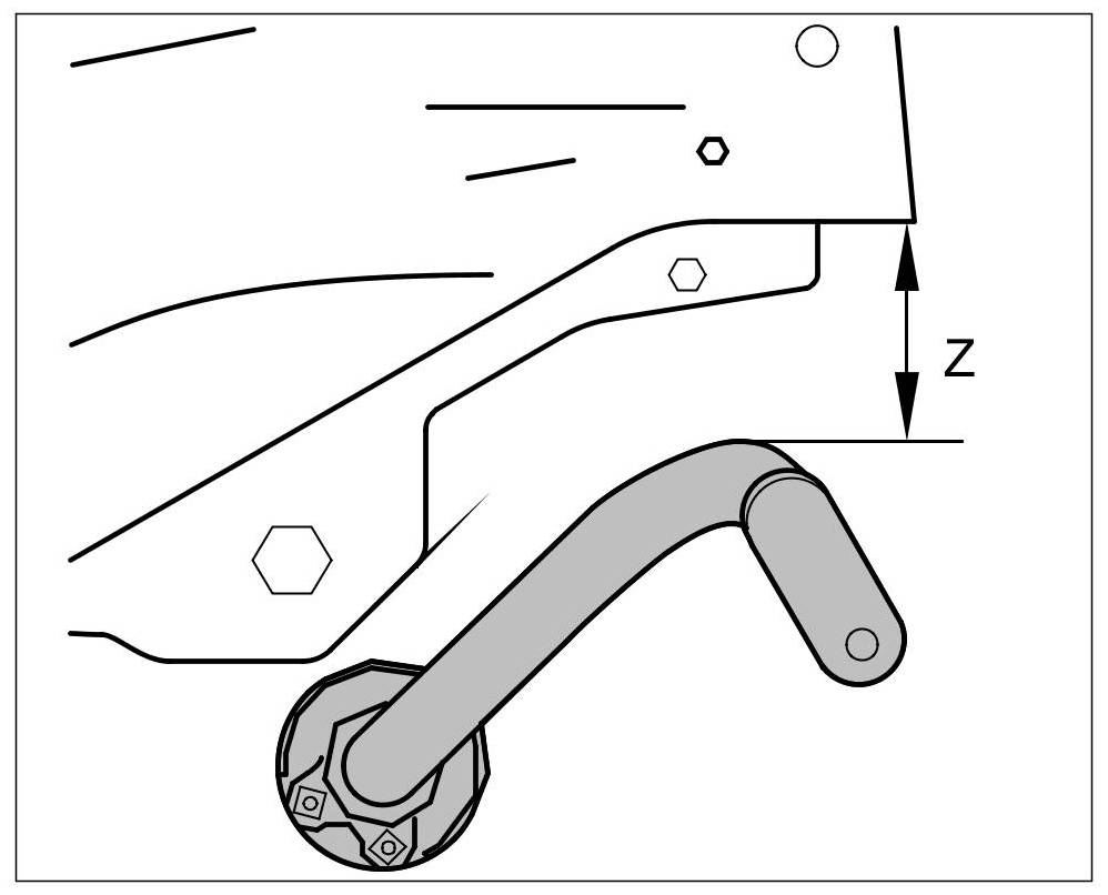 The anti-roll bar must be positioned before tightening the fastening screws of the anti-roll bar support (=front-axle support) so that the highest point of the anti-roll bar is positioned at a distance from the frame support (not the fold!) of -Y- or -Z-.