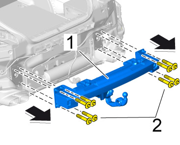 2. Disconnect wire harness for trailer hitch at the drive and remove wire harness for socket at the coupling, -> 972419 Removing and installing wire harness for removable trailer hitch - section on "Removing" 972419 Removing and installing wire harness for removable trailer hitch