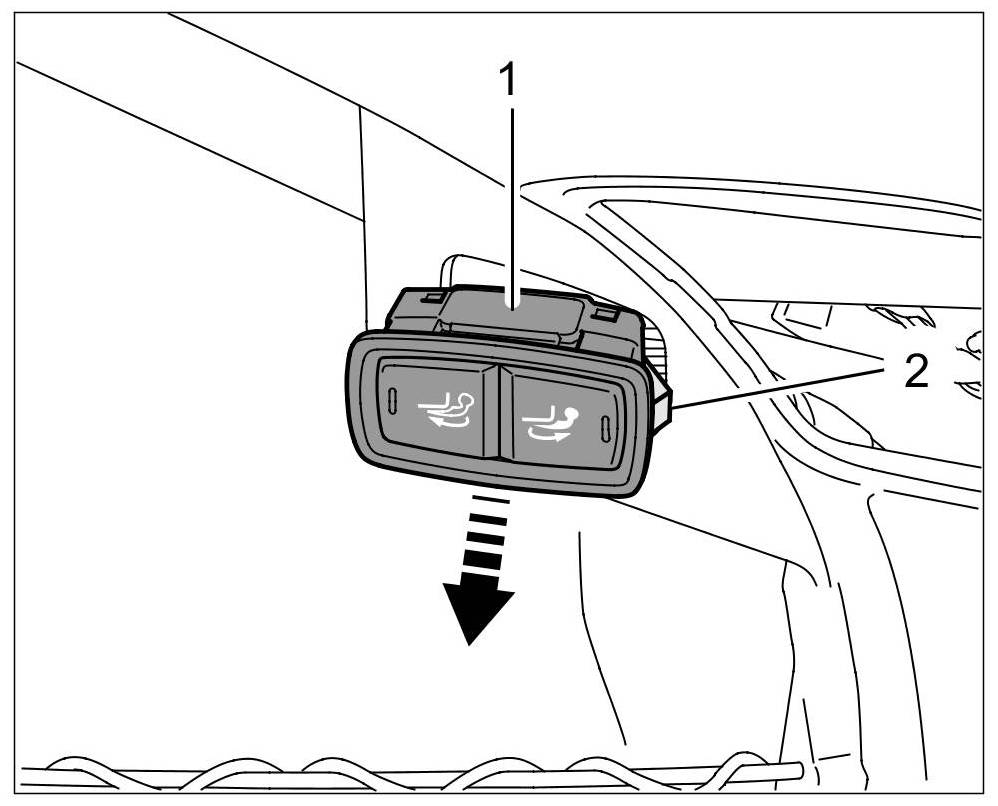 2. Press the locking lug -2- through the opening in the trim panel and slide out the switch -1-.