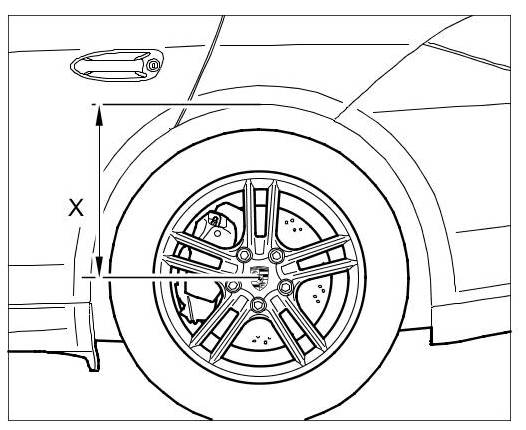 Dimension X = middle of wheel to lower edge of wing (rear axle shown)