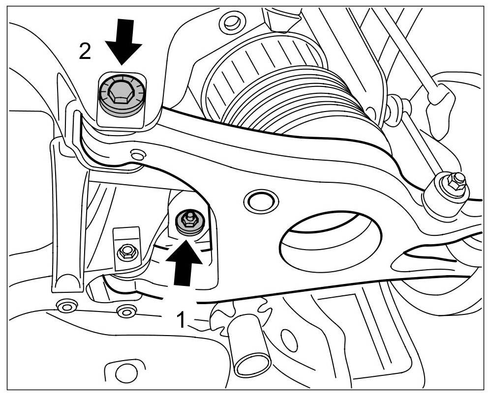 Specified tightening torque for lock nut on toe eccentric adjuster -1- = 100 Nm (74 ftlb.)!