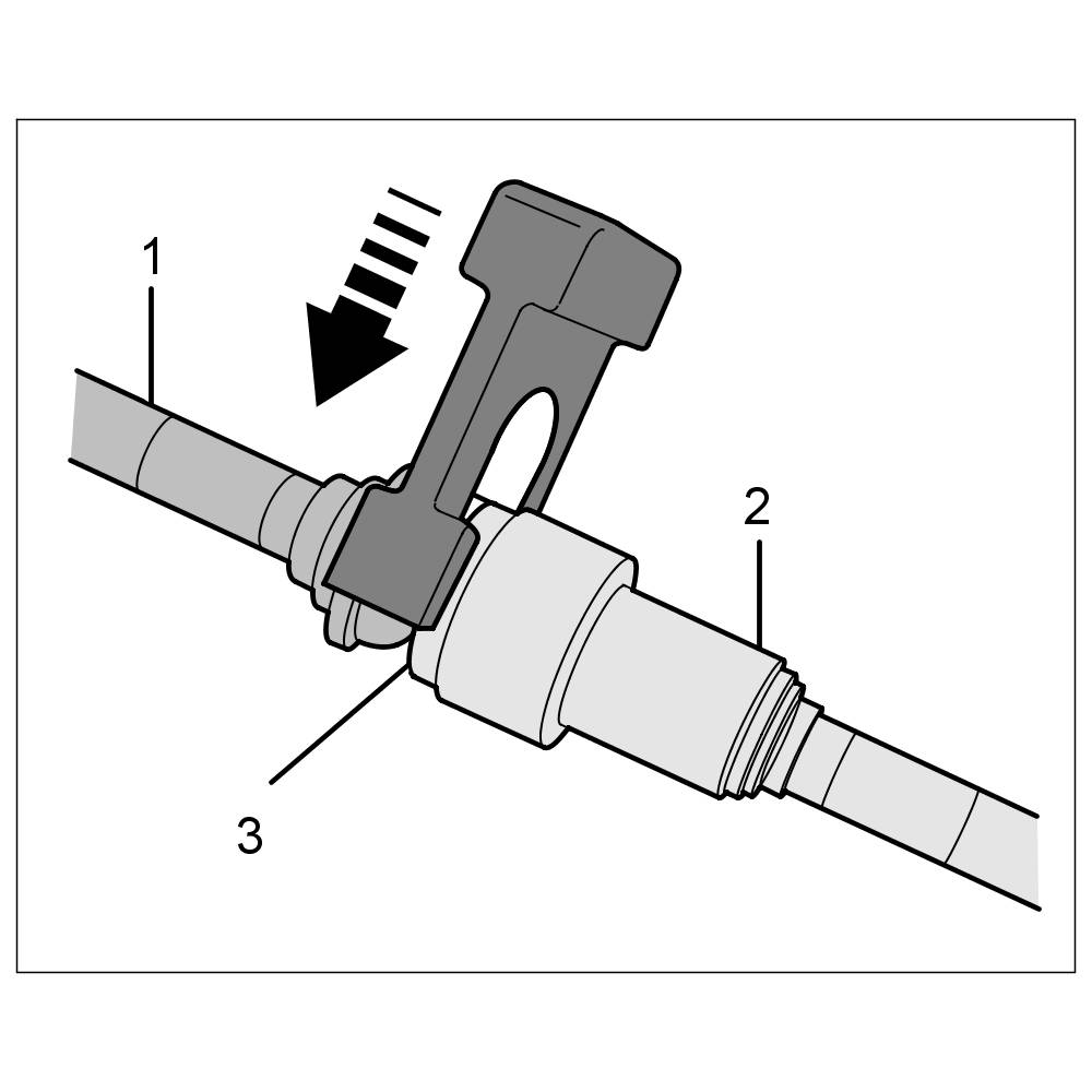 If the plug-in coupling is locked correctly, you should be able to feel slight axial play between the connector -1- and plug-in sleeve -2-. A plug-in coupling cannot be partly locked.