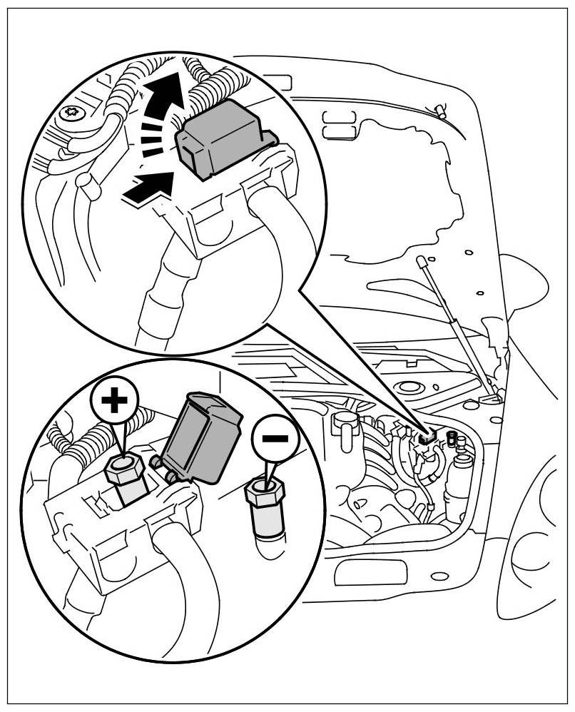 -> Route the jump leads so that they do not become entangled in moving parts in the engine compartment.